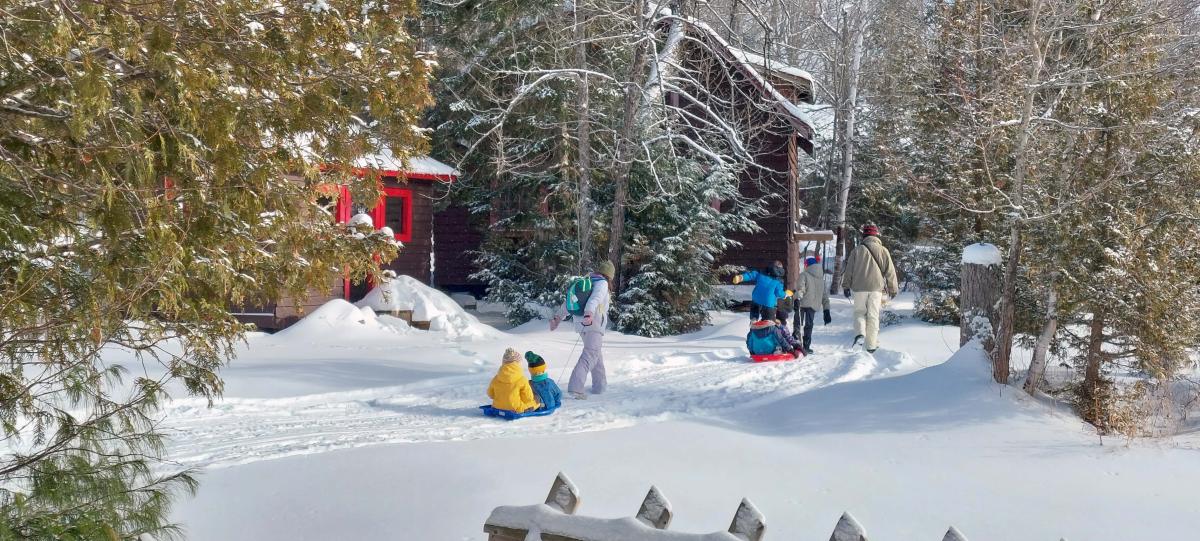At night, your family will sleep in one of our winterized cabins that include a private toilet and shower.