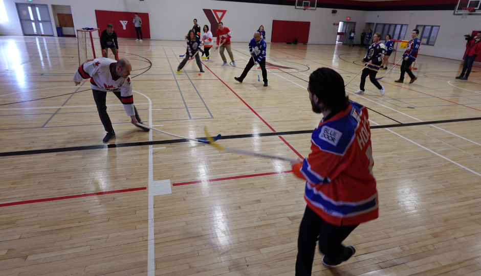 Following the tour, Williams and Rinaldo made their way to a YMCA gym to play a friendly game of floor hockey with YMCA staff.